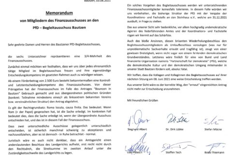 So liest sich ein Brief vieler Mitglieder des Finanzausschusses der Stadt Bautzen an den PfD...
