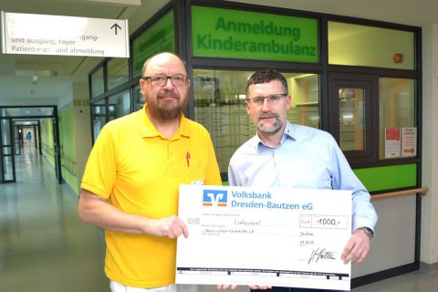 Der Geschäftsführer der Handelshof Bautzen GmbH, Ralph Böttcher, überbrachte einen großen Spendenscheck von 1.000 Euro...