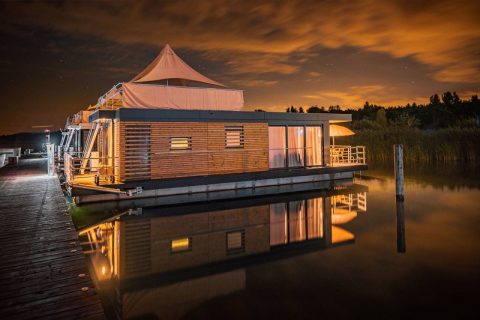 Schwimmende Häuser im Bärwalder See