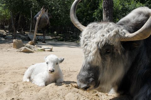 Im Tierpark Görlitz wurden schon viele Yaks geboren. Von schwarz über dunkel mit weißem Rückenstreifen...