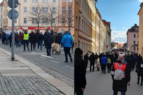 Vielerorts gingen am Sonnabend die Bürger in der Oberlausitz spazieren. In Bautzen versammelten, (nach Polizeiangaben...
