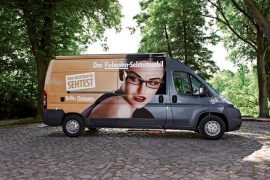 Die Fielmann-Augenoptiker touren vom 17. Mai bis 25. Mai mit einem Sehtestmobil durch Sachsen. An...