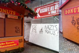 Sinnlose Beschmierung von Weihnachtsmarktbuden