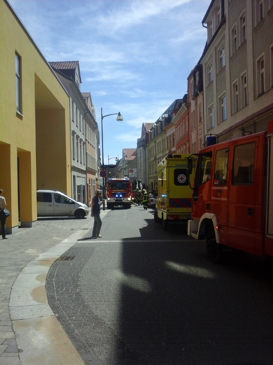 Es ging alles ganz schnell diesen Freitag Mittag im Bautzener Stadtzentrum. Ein Wohnungsbrand in der Tuchmacherstraße sorgte für Aufregung. Innerhalb kürzester Zeit waren Schaulustige, mehrere Feuerwehren, Polizei und Presseleute vor Ort. Unter dem Dach eines Mehrfamilienhauses qualmte es. Offenbar lag die Ursache dafür in einem unverschlossenen Heizungsraum. Die Feuerwehr löschte den Brand und lüftete das Haus, das alle Bewohner zwischenzeitlich unbeschadet verlassen hatten. Die Kriminalpolizei hat die Ermittlungen aufgenommen. Ein Brandursachenermittler wird seine Untersuchungen führen und prüfen, ob es sich womöglich um einen technischen Defekt an der Heizungsanlage handelte.