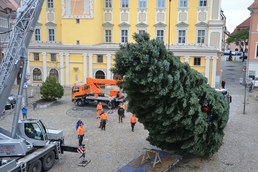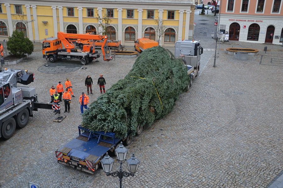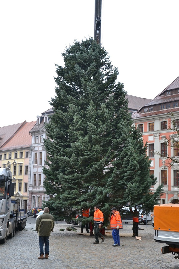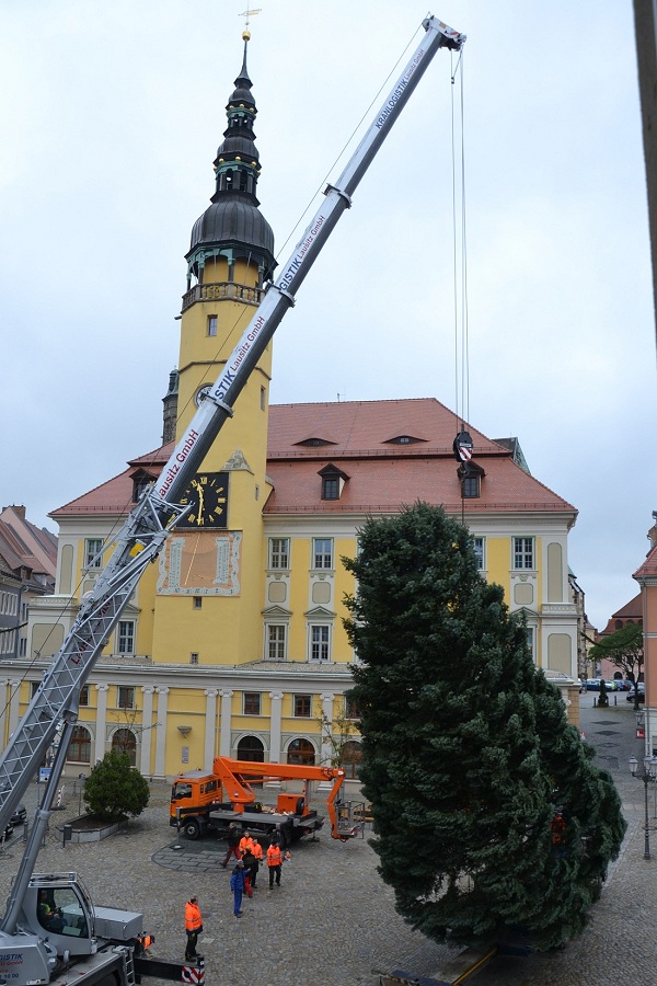 In Bautzen wurde heute auf dem Hauptmarkt der Weihnachtsbaum für den 634.Wenzelsmarkt aufgestellt. Die zwölf Meter hohe Colorado-Tanne spendete in diesem Jahr eine Familie aus Hochkirch. Am 1.Dezember, um 17 Uhr wird König Wenzel die Lichter des Weihnachtsbaumes „anzünden“.